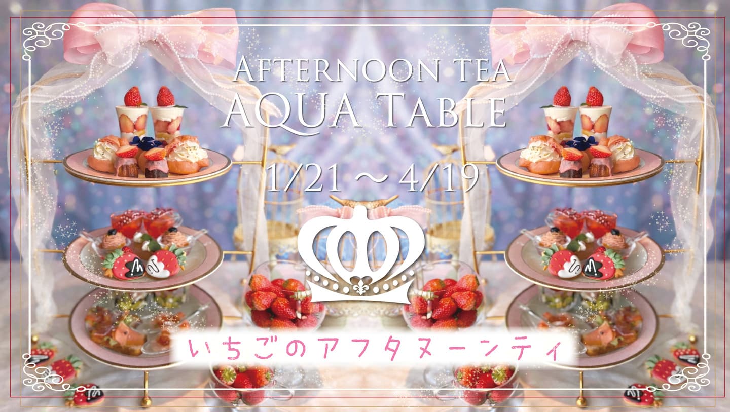 “今しか味わえない苺のアフタヌーンティ”。会話が弾む午後のひとときを、アクアでゆっくりお楽しみください。