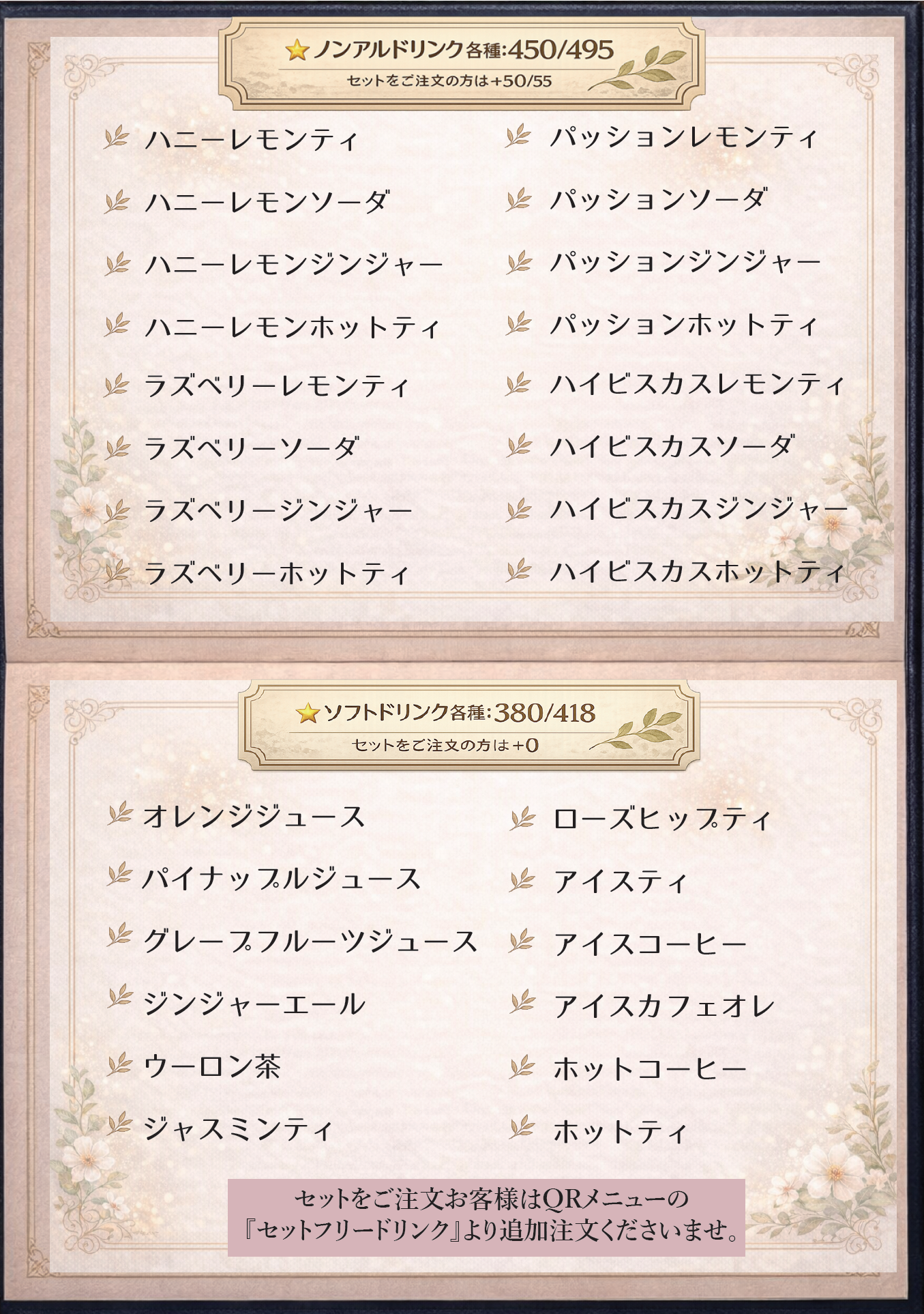 フリードリンク(LO昼の部15:00・夜の部21:00)