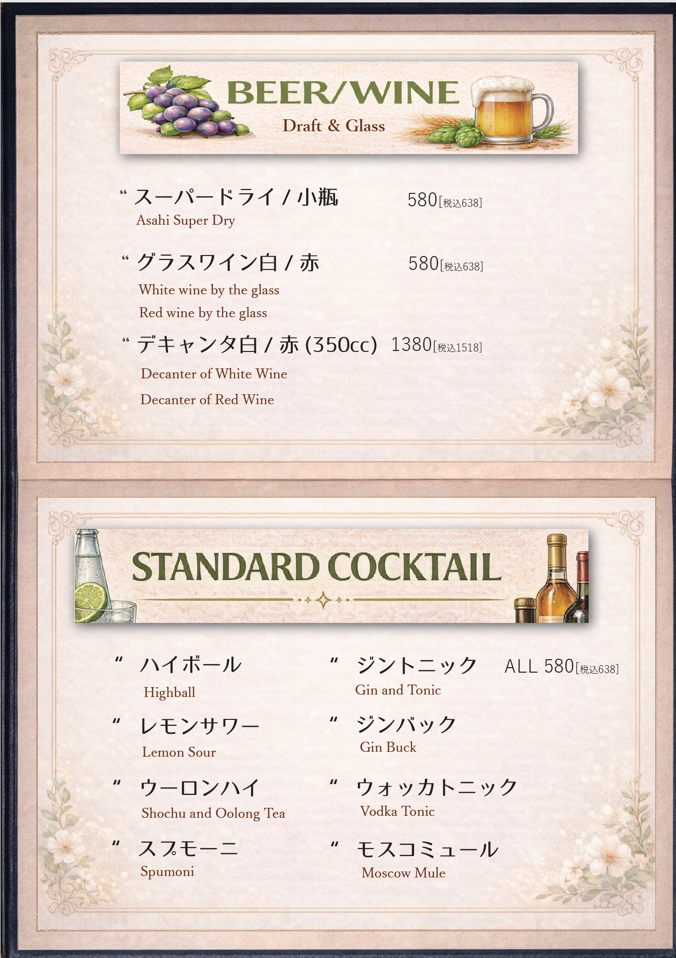 ※ノンアル・アルコールの内訳は当日ご来店時にお伺い致します。
