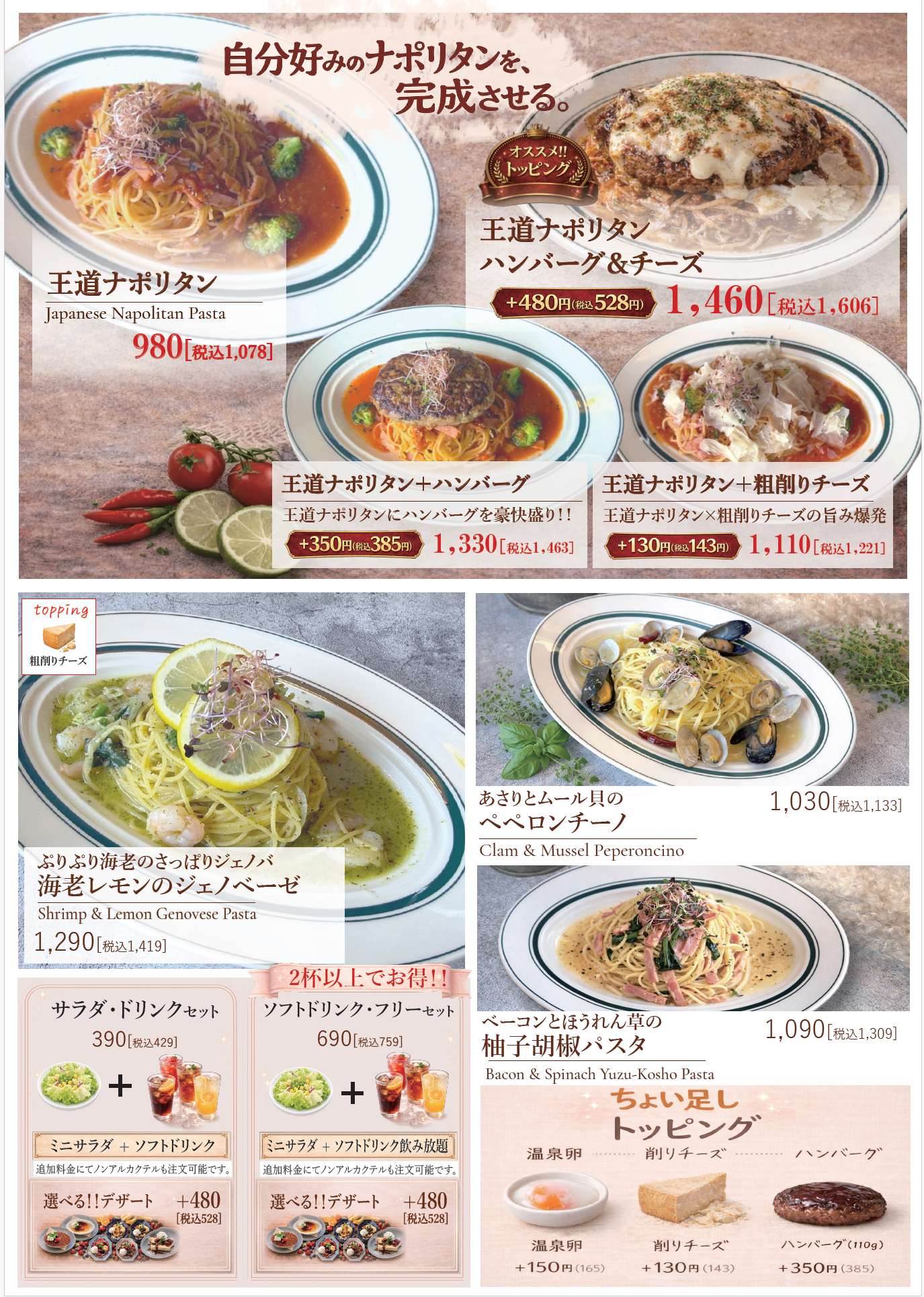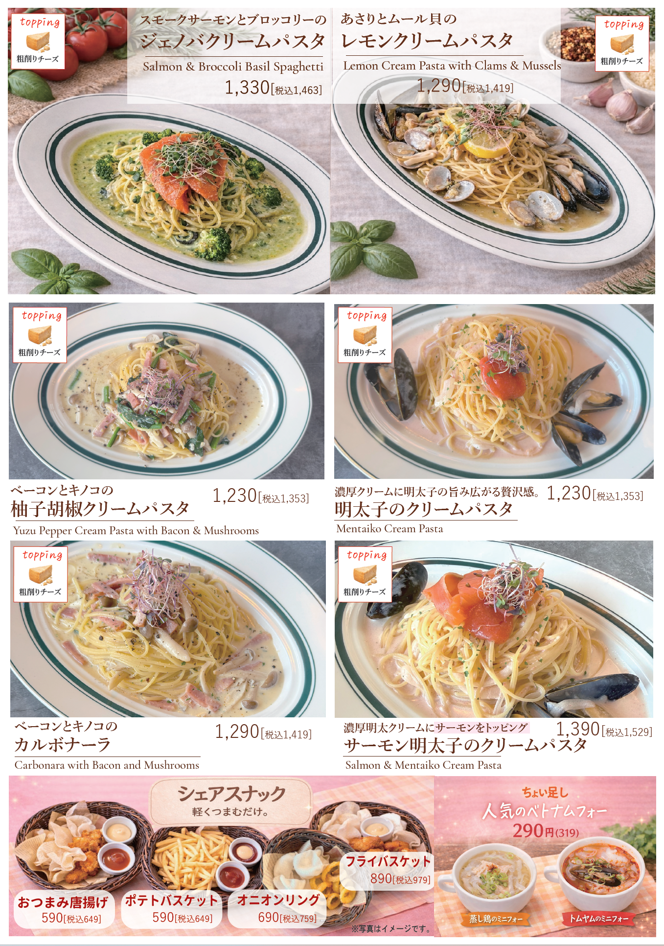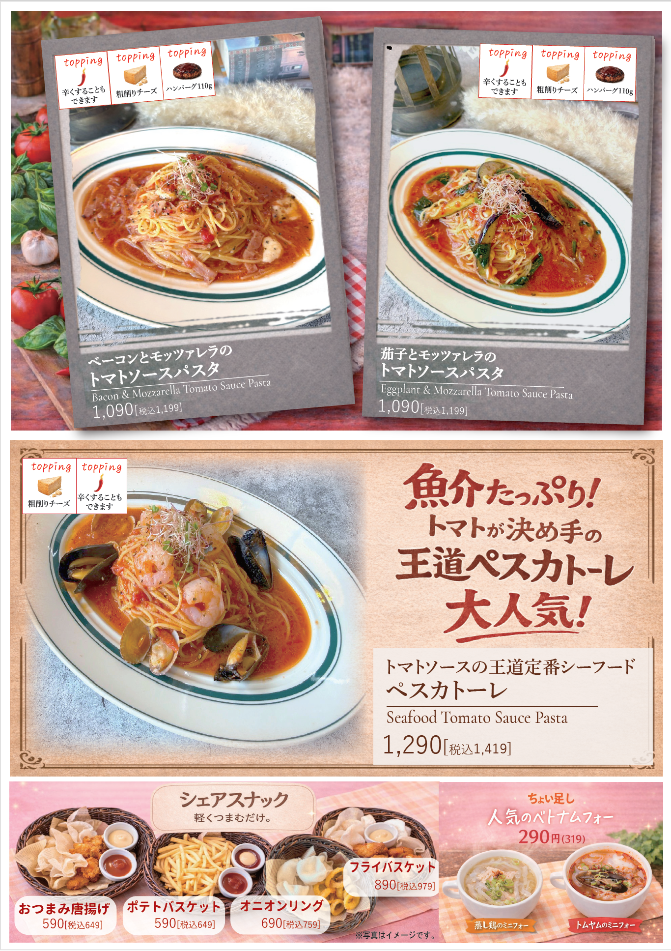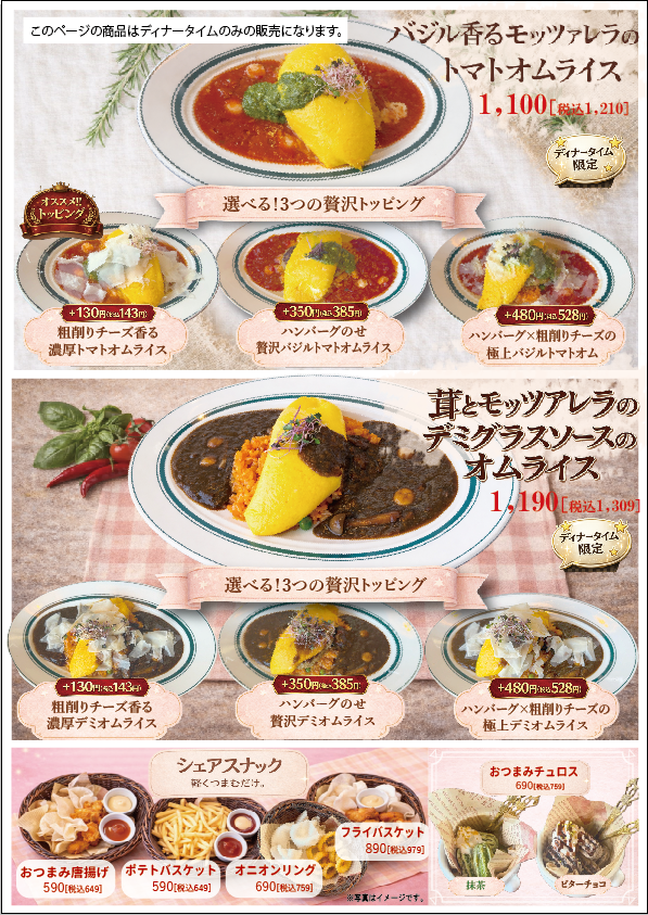 (パスタ・ポテトは当日ご注文いただけます。)※その他グランドメニューからもご注文いただけます。
