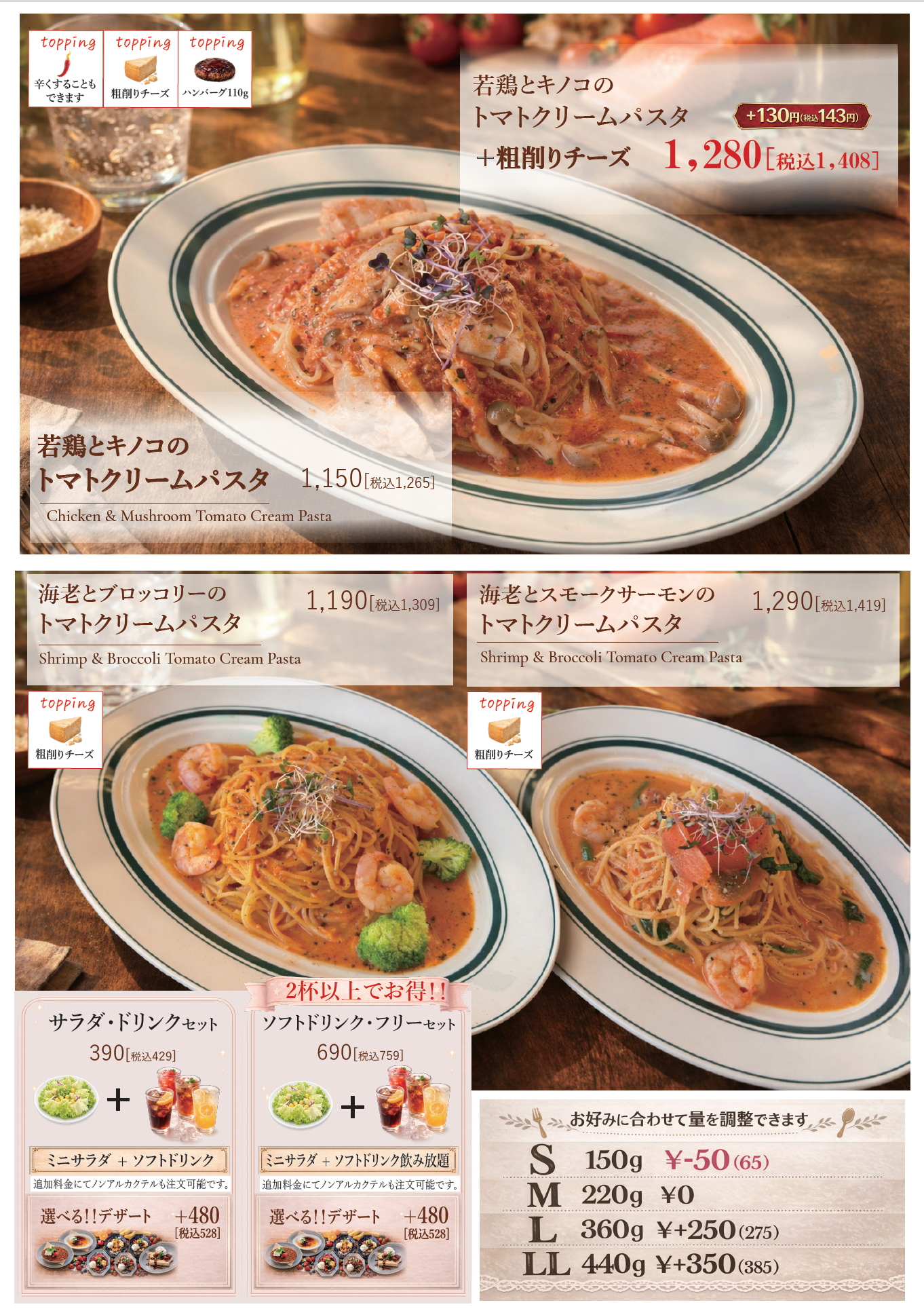 ・海老とブロッコリーのトマトクリーム+100(110)